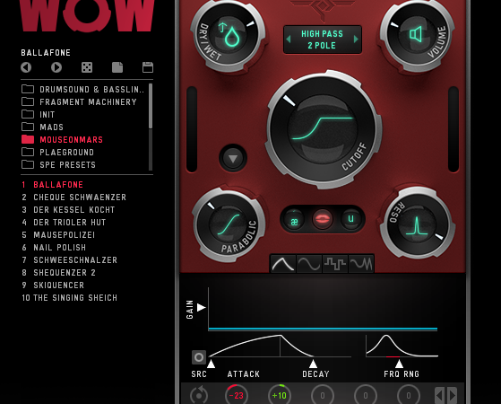 WOW2 – WOW2 boasts 21 filter types, seven distinct distortion/overdrive effects, and additional modulation/sequencing. It also has a randomization function to help you get some crazy sounds with little effort. This additional ability helps you learn this powerful, fat-sounding tool quickly.