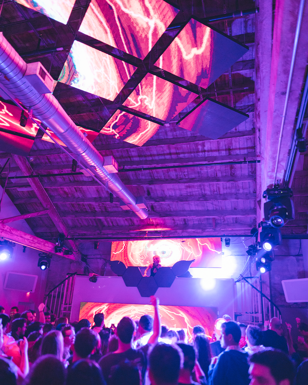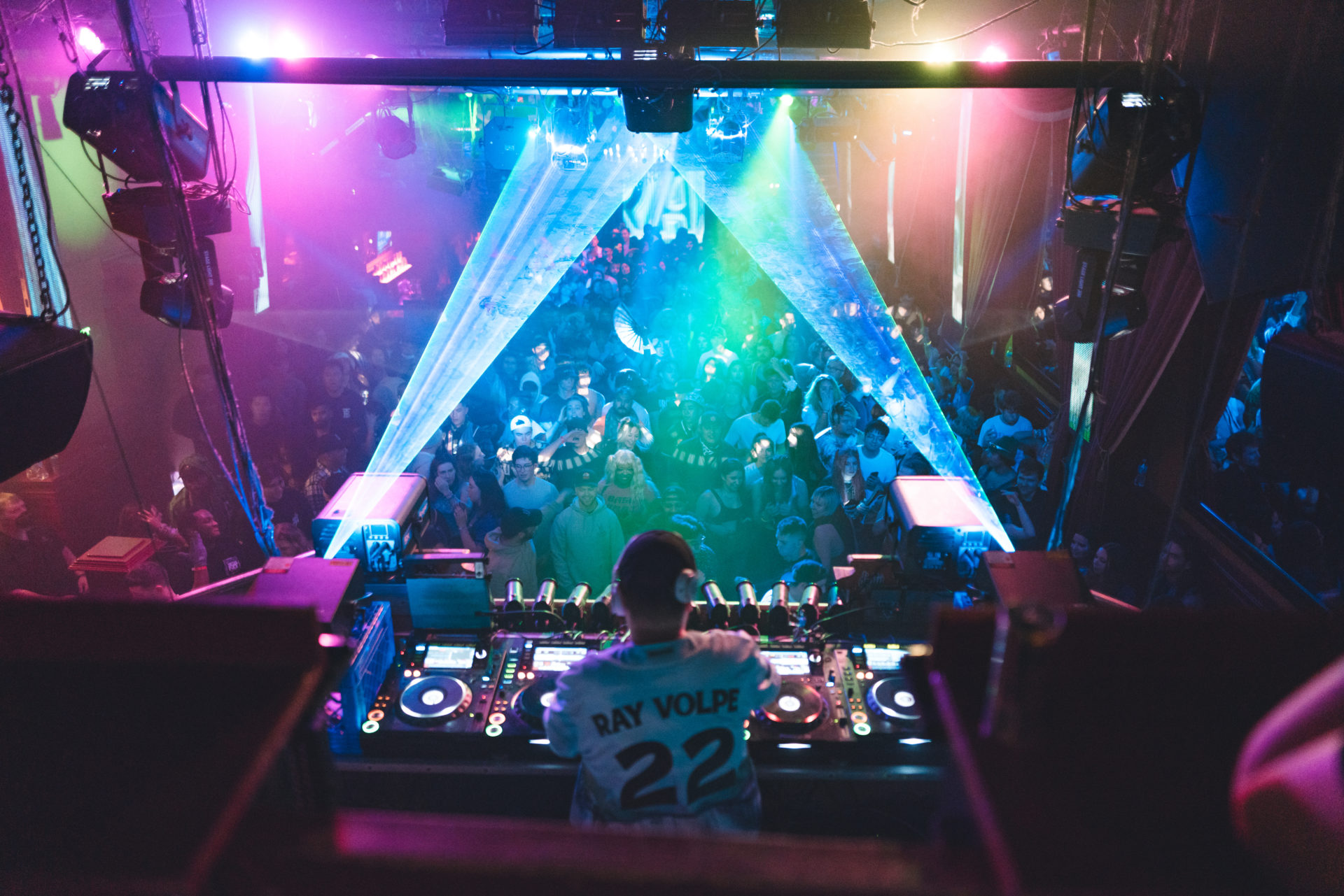 Ray Volpe at Trinity nightclub shot from behind the stage with purple lasers