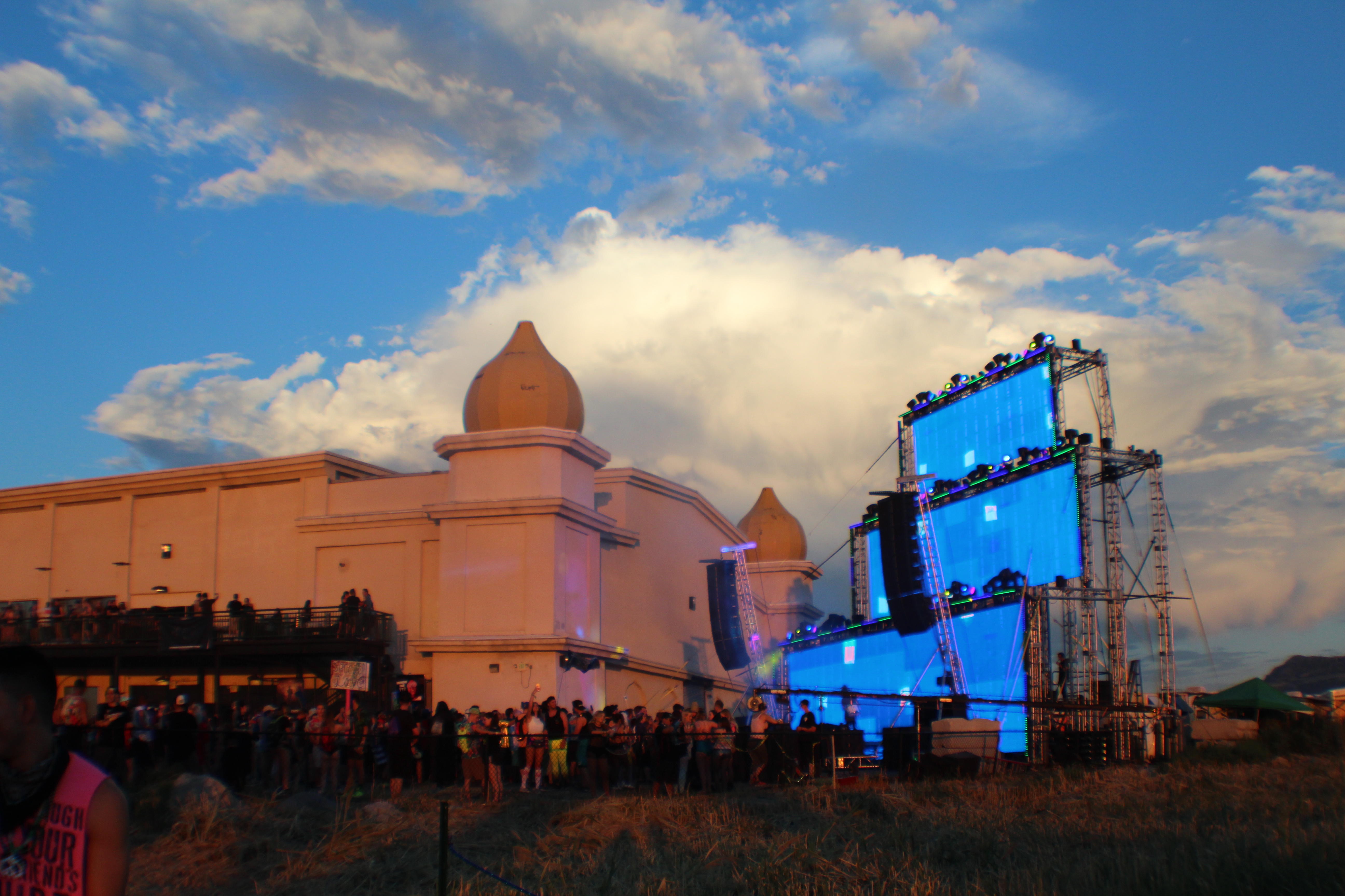 The two-day festival took place at The Great Saltair, about 20 minutes from Salt Lake City. The venue was heaven on Earth with mountains in the backdrop, sandy beach, and calming water. The festival was made up of three different stages: Energi Field (main stage), Synergy Station (indoor stage), Galactic Flats (beach stage).