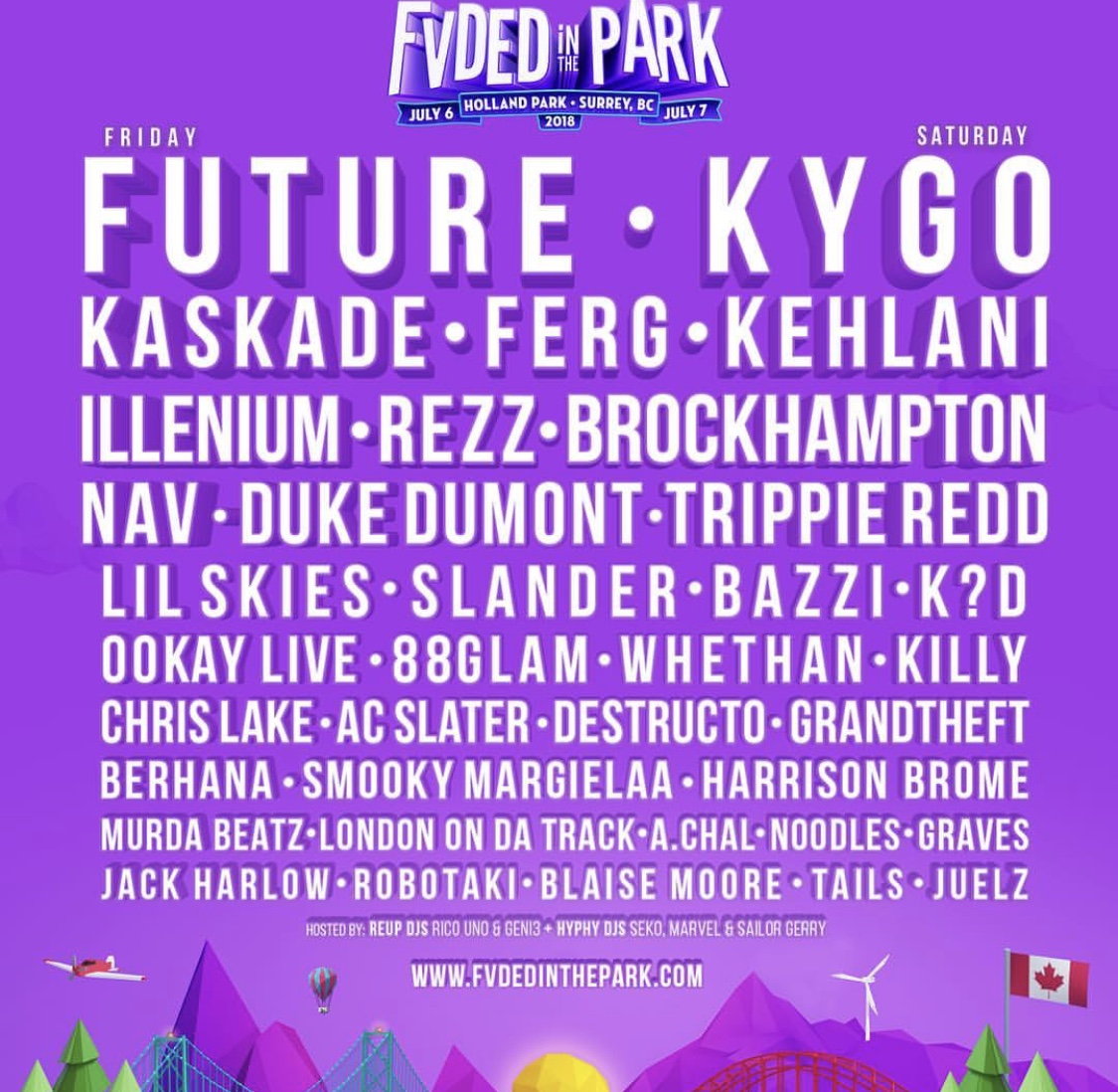 FVDED 2018 takes place Friday July 6, to July 7th. Early bird two-day passes go on sale Thursday, starting at $179.50 CAD (appx $140 USD).