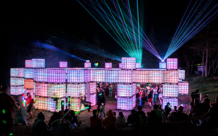 Art installations ran deep into the forest, all of which were interactive in some way. We ran through a giant jellyfish made out of streamers, walked a stone labyrinth, got cozy in Temple PLUR. The Performance Cube outside the forest also grabbed our attention. We watched hip hop dancers perform then relaxed on floaties while listening to a Sound Healing session.