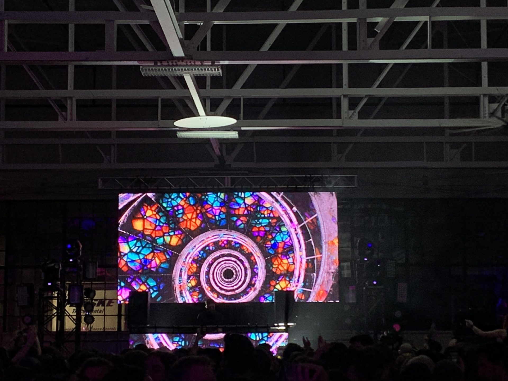Even with the sound quality being a little less than perfect, we were stilled happy to see a stage setup with lights and LED panels for Tchami’s amazing visuals. His signature known theme of stain glass patterns were amplified beautifully throughout the Hangar.