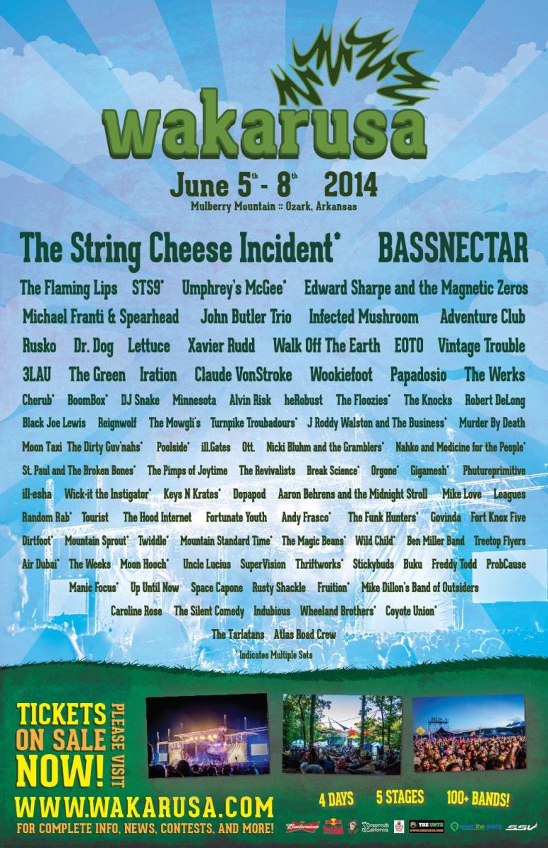 SInce 2004, Wakarusa has taken not only the south, but the entire country by storm. Each year a loyal following of dedicated “Wakarusian’s” gather at Mullberry Mountain that is described as “much more than a camping and music festival that must be felt to be understood”. On the Wakarusa site it also goes onto saying that Wakarusa was and remains “created BY music lovers, FOR music lovers”. With previous headliners like Pretty Lights, Primus, Widespread Panic, STS9 and dozens of other worthy names over the years, Wakarusa is a one-of-a-kind festival that still holds the same down-to-earth-home-feel-vibe mixing the best jam bands (Primus, STS9, Widespread Panic to name a few), as well as the popular festival EDM acts like Bassnectar, Pretty Lights, Zeds Dead, Skrillex and dozens of others throughout the four days of the festival.
