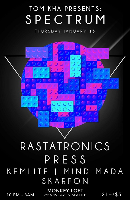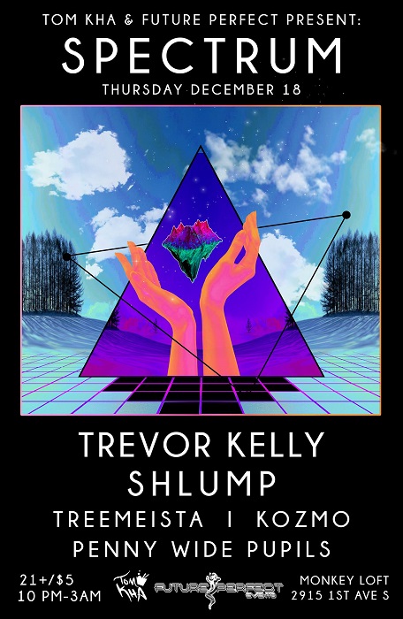 [quote author=”Peter”]We founded our twice-monthly event SPECTRUM at The Monkey Loft with the goal of maintaining a super high degree of quality in our bookings, but not limiting ourselves to one genre or style. And even though this presented some unique challenges, it also had the advantage of appealing to a lot of different crews and scenes in Seattle. So over time we’ve built this amazing family who are brought together not by a desire to hear one specific style of music, but because they want to hear something new, and to embrace how eclectic bass music can be. We hosted a total of 23 SPECTRUMS and a handful of other shows, including our new night DRIFT at The Baltic Room– I think my favorite parties were the 813, Pixelord and SAB show at Kremwerk, the EPROM show at Chop Suey, 6Blocc at Monkey Loft, and Nastynasty at The Baltic Room. We had a pretty amazing time at the Boats/Yheti and Trevor Kelly/Shlump shows as well (s/o Future Perfect!). There’s so many I’m leaving out. This year has been incredible. [/quote]