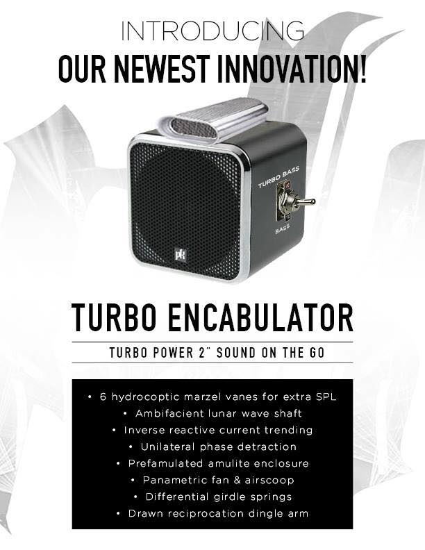 We have no shame in admitting we’ve got a soft spot for bass. And when it comes to best sound in the industry, PK Sound is certainly at the head of the pack. With their latest Gravity line of subwoofers, the small Calgary based company has been bringing the noise for several years. Anyone who’s attended Shambhala, Paradiso, EDC…or really any major festival across the PNW have experienced the power of a PK rig. This April Fools, PK officially announced their latests product promising massive sound…ON THE GO! With 6 “Hydrocoptic Marzel Vanes” for extra SPL and enclosed in “Prefamulated Amulite”. The PK “Turbo Encabulator” is a full two inches of bass fury!