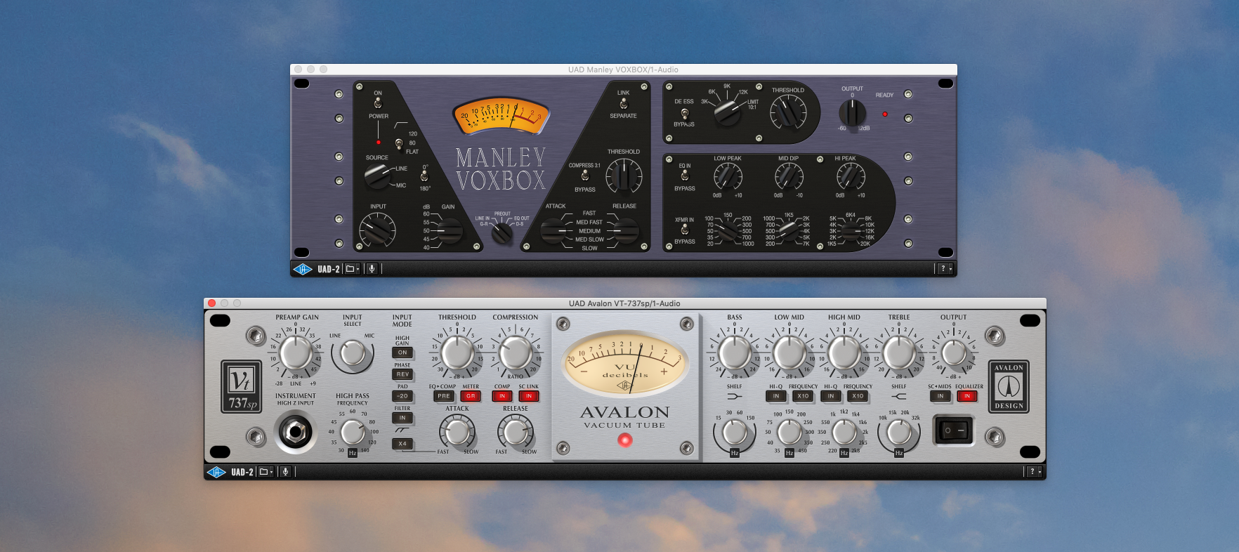 UAD Manley VOXBOX has a mellow warm sound that is perfect for sharp-sounding vocals or conversely delicate instruments like piano, strings and horns. The Avalon on the other hand has a more saturated sound by default and is more “in your face”. It also features stepped controls for important controls like gain, attack, release, as well as de-esser and EQ frequency.