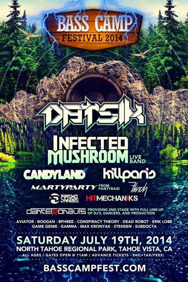 Looking for something to do after Paradiso this year? Bass Camp 2014 is returning very soon to Lake Tahoe, this time at a brand new location. On July 19th, Bass Camp 2014 will move to their new home at North Tahoe Regional Park, held on Lake Tahoe grounds. The all-day event will go for 12 hours beginning at 11am, with this year’s lineup featuring the likes of Datsik, Infected Mushroom (Live Band), Candyland, Kill Paris, MartyParty, Flinch, and many more.