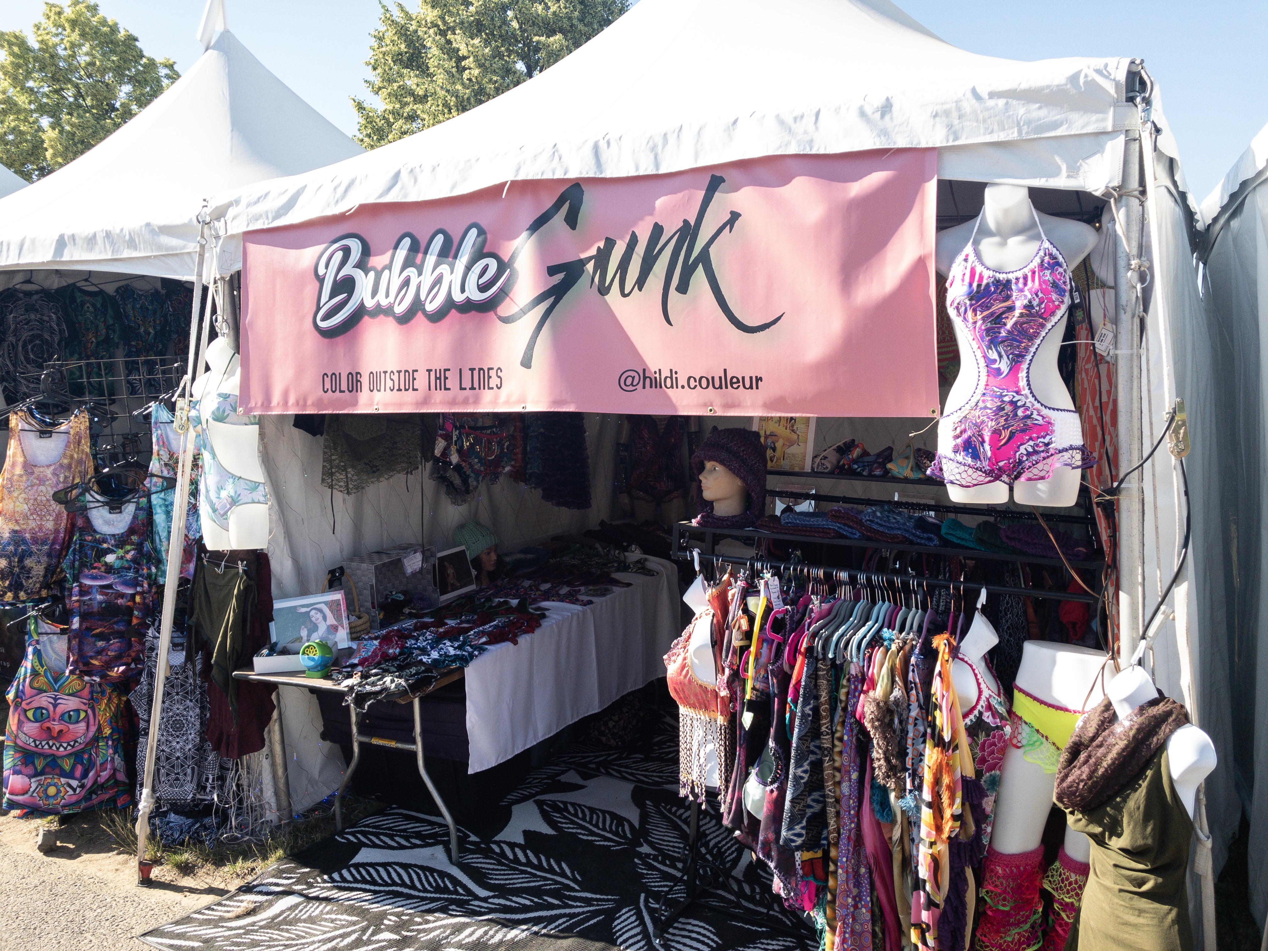 Custom handmade rave gear! We stopped by Bubble Gunk, which is an eclectic collection of handmade festival and rave couture by designer Hildi Couleur. The designer is from Olympia Washington and we can’t get enough of that local goodness for the PNW festival goers.