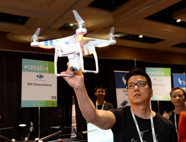 The DJI Phantom 2 Vision is an aerial system that has a 14-megapixel camera on board that can shoot raw photos and 1080p video. It can be controlled with an iPhone or Android smart phone and has a 25-minute flight time. The current models are being sold for $2,000, but future models that have longer flight time are still in the works.