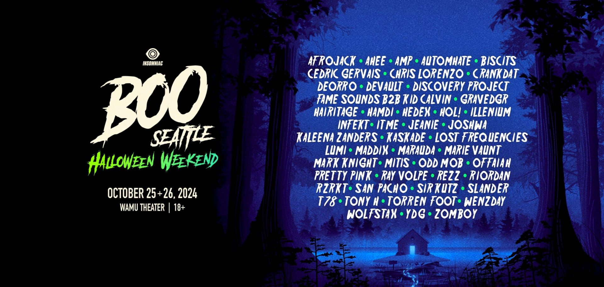 Rezz, Illenium, Slander, Kaskade, Afrojack, Kaskade, Zomboy, and tons more will be headlining BOO Seattle 2024 in this year’s edition of Insomniac’s annual Halloween rave celebration.