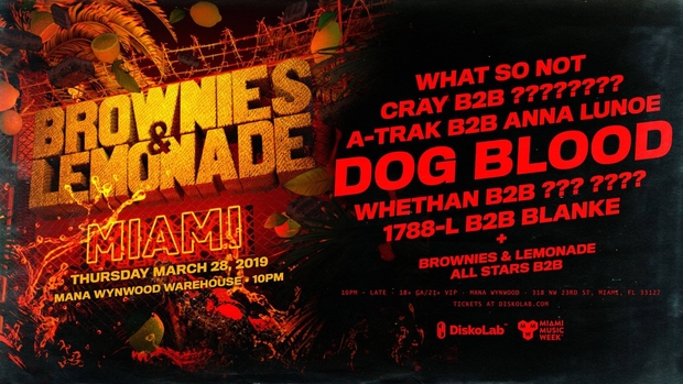 Teaming up with South Florida EDM powerhouse DiskoLab, Brownies and Lemonade announced its Miami Music Week party this week. Taking place the eve of Ultra Music Festival 2019, March 28th, the lineup, so far, will make your jaw drop!