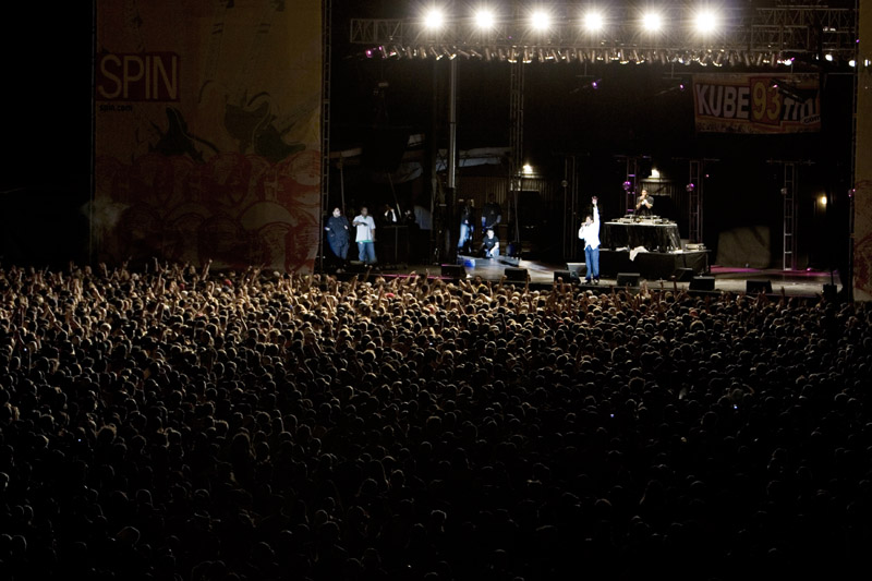[quote style=”1″ author=”Bumbershoot”]After three years in the KeyArena, a winning combination of necessity, patron feedback, and community support is allowing us to move our biggest stage back outdoors this year. We’ve listened and thought long and hard about how to make the whole Bumbershoot experience better. By relocating the Mainstage to the north side of (Memorial) Stadium (instead of the western end zone) and opening additional exits, we’ve created a way to drastically minimize lines.[/quote]