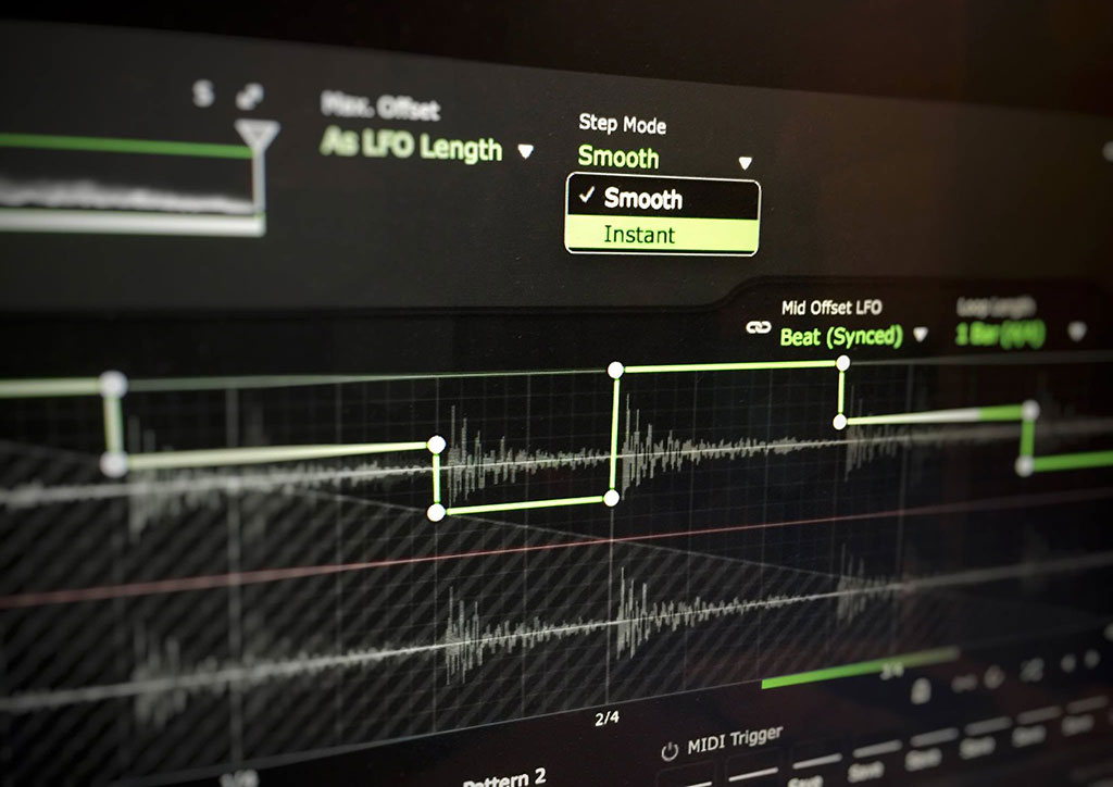 We started our composition with a kick drum. We chose a simple 4/4 pattern but it still sounded stagnant and a bit boring. It was clear to us that the sound needed to change over time; VolumeShaper and FilterShaper were the perfect tools for the job. With these tools at our disposal, we got to work using them to give our kick drum stronger dynamics and a “live” feel. We accomplished this by linking both effects to the native tempo of our DAW. Then we added subtleties to the sound using these effects, now synchronized with our song. The finished product had varying levels of attack, body, and timing. This kept the ever-present kick drum changing and constantly breaking our expectations.