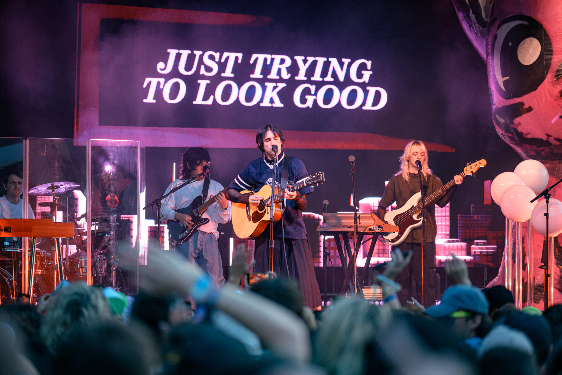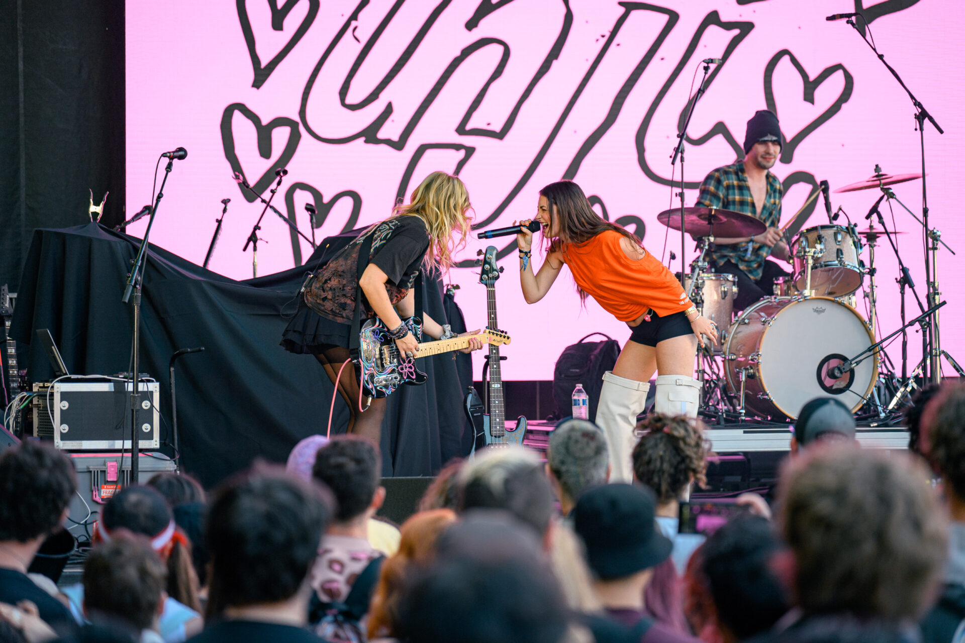 100 Gecs brought the full-force weirdness their fans adore. Known for pushing the limits of hyperpop, duo Laura Les and Dylan Brady delivered a set that was chaotic, loud, and fun. Fans got their chance to mosh, but the vibe remained positive and welcoming. There was an unspoken understanding in the crowd: this was supposed to be weird, and that was the point. Their song money machine rallied the whole crowd into a synchronous headbop; it was exhilarating to dance along to their glitchy, genre-blending sound.