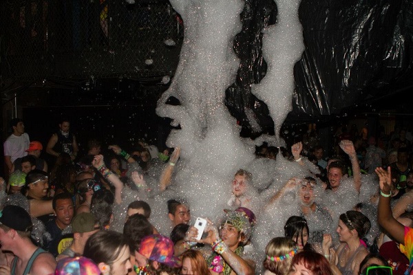 Despite being a foam party, it was entirely possible to leave scot-free depending where you stood. But boy, was it hot. The devil himself would’ve been toasty inside Bubble Bobble that night. Studio Seven’s beloved smoking section proved to be a godsend, offering attendees the space to mingle and relief from the heat. Have we mentioned before how much we miss smoking sections?
