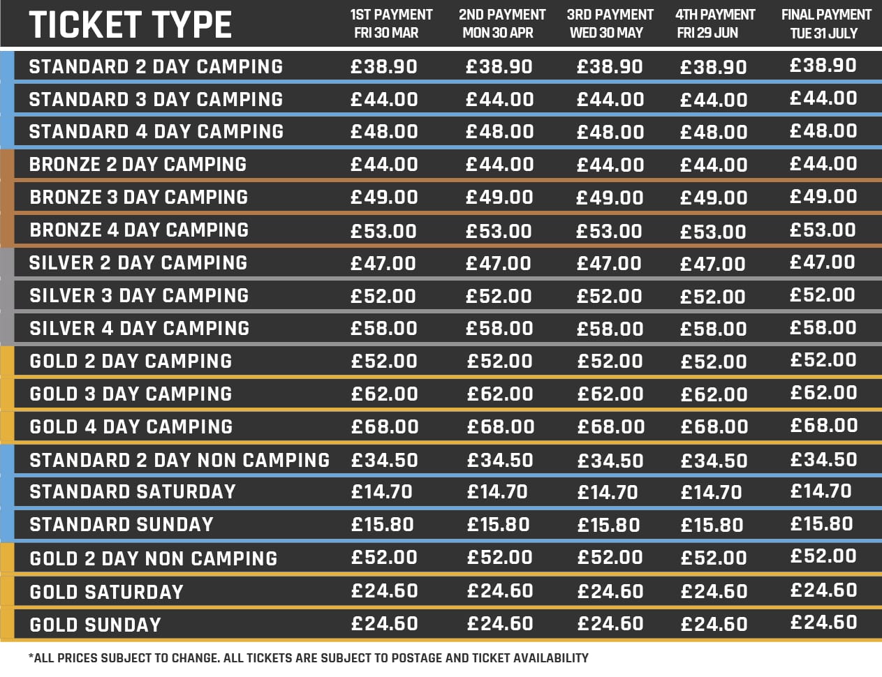 If you would like to camp it will cost you between $280 USD up to $400 USD depending on which plan you decide to choose. You can also opt to do a payment plan with your ticket. Payment plans start as low as $30 USD a month for single day tickets, and with the highest being $80 USD a month for the gold 4 day camping.