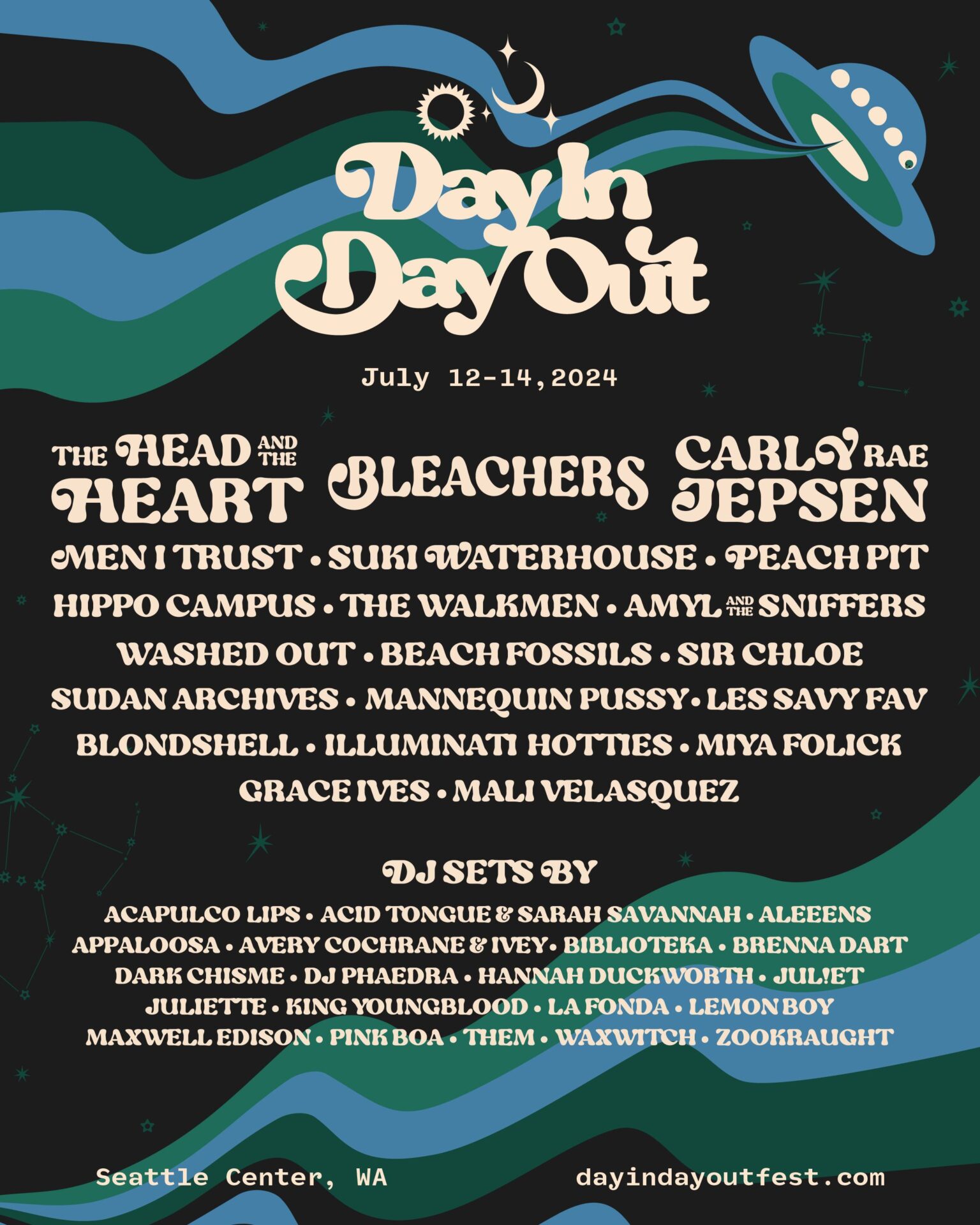 This year, we can expect to see dozens of some of the best retro-pop, electro, and indie-rock groups, and DJs known both locally and nationally. Headlining for each day of Day In Day Out will be Seattle natives The Head and the Heart, Bleachers, and Carley Rae Jepsen. Among the many artists performing at DIDO we can also expect to see acts like Peach Pit, Men I Trust, Beach Fossils, IVEY, Acid Tongue, and Grace Ives.
