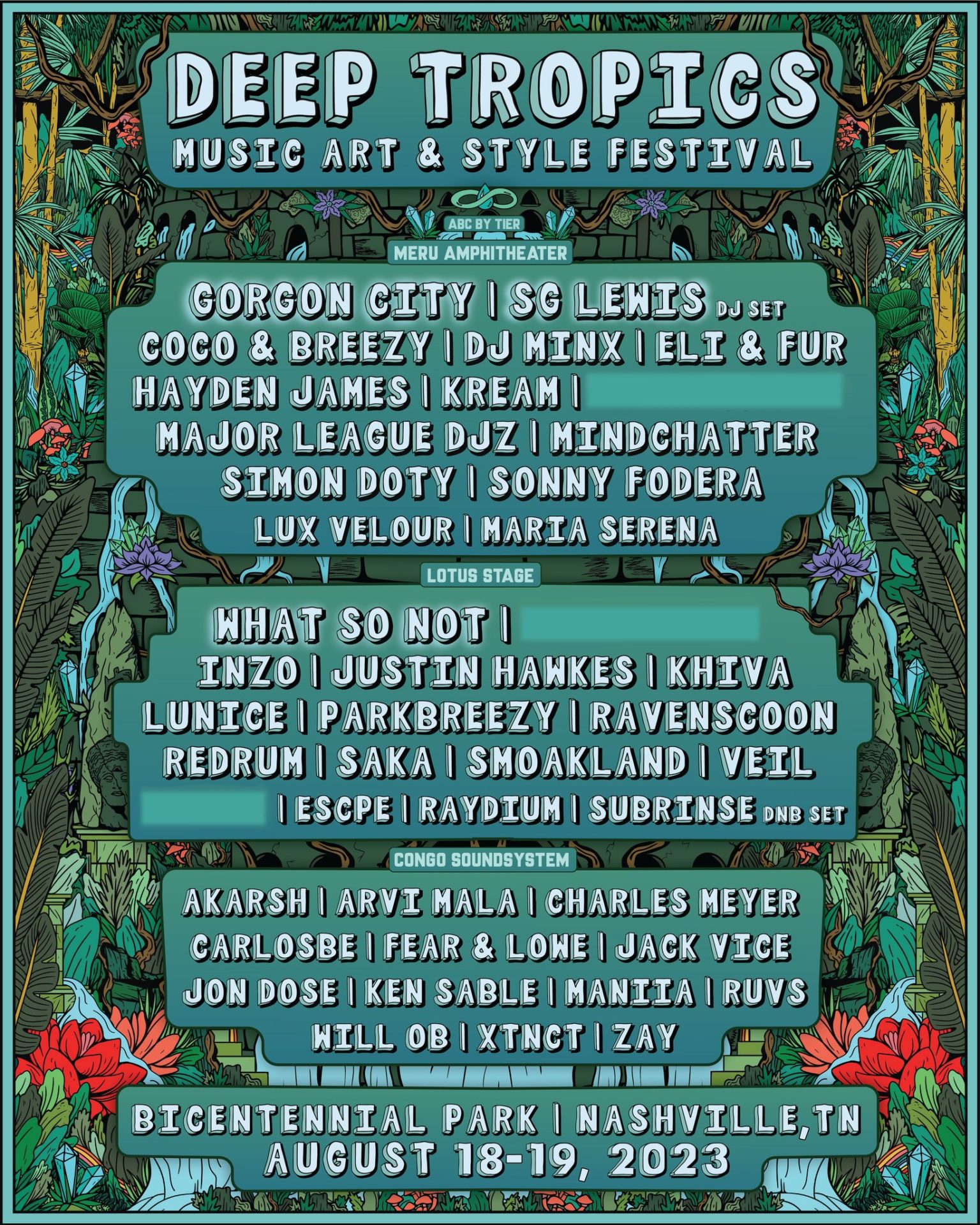 Deep Tropics Music Festival taking place in Nashville, TN this coming August 18-19 has earned critical acclaim for their unmatched experience offerings and their remarkable accomplishment in making it the most sustainable event in the USA. In recent announcement, their 5th iteration of the festival invites fans from all over the the globe to experience great music and interactive art. Not to mention, a stellar lineup that would make any music fan excited. Top tier artists such as Gorgon City, What So Not, SG Lewis, Simon Doty, and more will all be in attendance at the two-day festival.