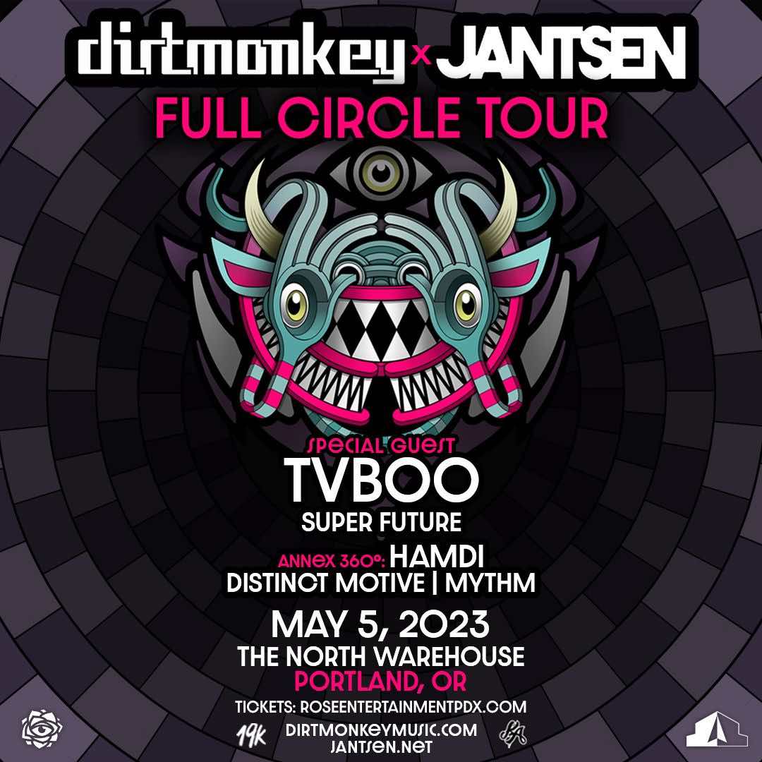 Brace yourselves: Dirt Monkey and Jantsen have upcoming stops in the Pacific Northwest on their Full Circle tour! The two bass artists are swinging by both Portland and Seattle this May, promising to be a show to remember.
