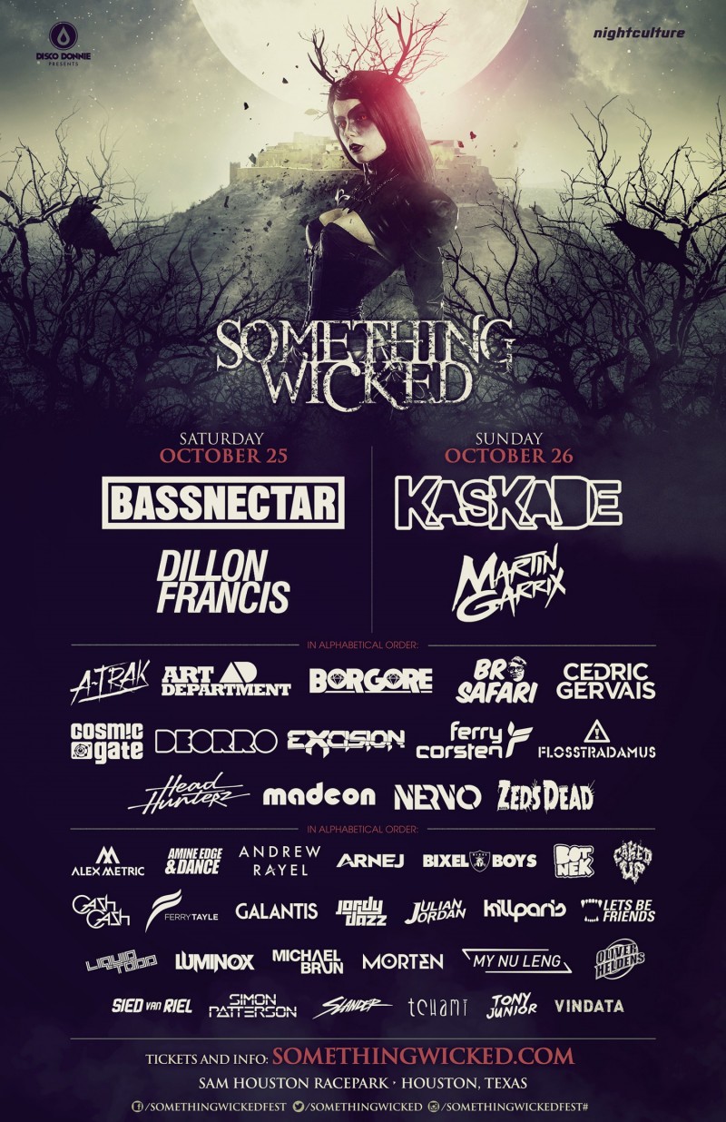 Disco Donnie Presents and NightCulture Inc. gives their fans and the people of Texas something massive to talk about with their recent announcement of this year’s Something Wicked festival lineup. The versatile lineup includes artists Bassnectar, Kaskade, Martin Garrix and Dillon Francis as their headliners and with over 30 other joining acts, fans of EDM who are looking for something to do for Halloween in that area won’t have much to complain about.
