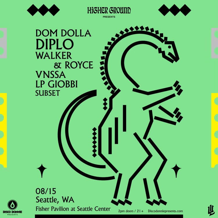 Together, their first show comes out of the gate swinging. On August 15th, Higher Ground Presents: Diplo, Dom Dolla, Walker & Royce, VNSSA, LP Giobbi, and Subset will bring house all night long to the Seattle Center. During the heat of Seattle summer, there’s no better way to spend it than dancing to some house music. Make sure to grab tickets on their website before the high-profile event sells out.