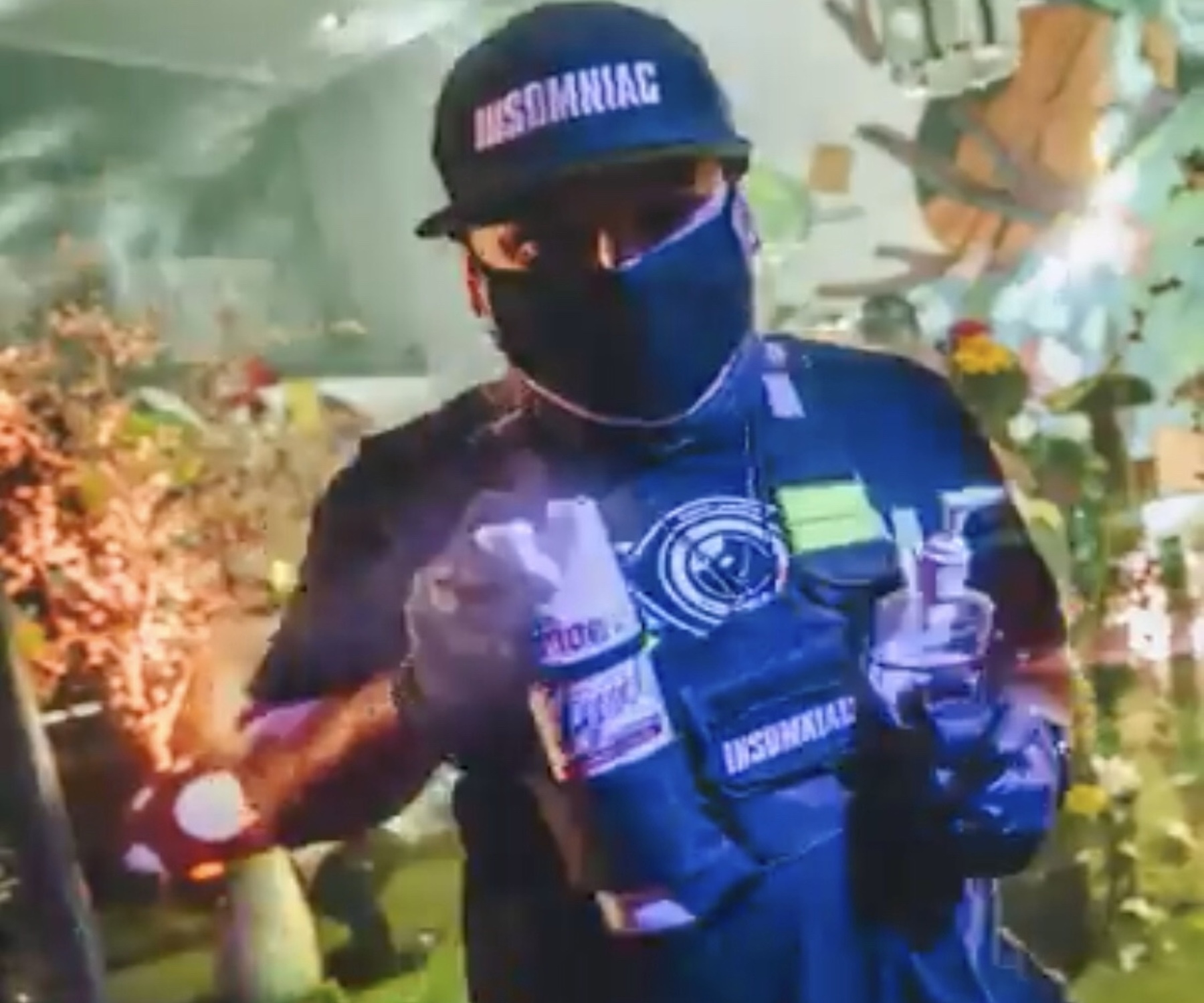 Between sets, a man, dripped head-to-toe in all-black, would “disinfect” the CDJs used by the artists- in addition to providing them with a pump of hand sanitizer. We don’t know who he is, or where he came from. It was hard to make out his face because of his ball cap and face mask. Disinfecto, as live-stream host, and Insomniac Head Owl, Pasquale Rotella, would call him, quickly became a fan favorite.
