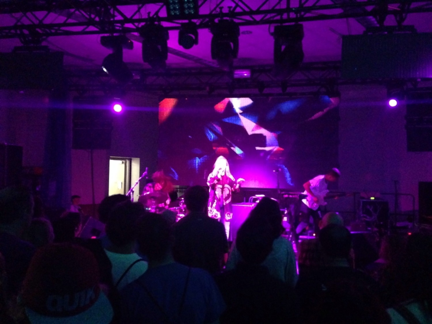 Young Karin, also from Iceland, is a beautiful vocalist, drummer, and bass player/vocalist. Playing down tempo, lyrical pop, she really packed a crowd; even though there was a big break in between H and YK. Lines for Negativland were ridiculous, and we have a feeling the stage is going to be packed out for the rest of the night.
