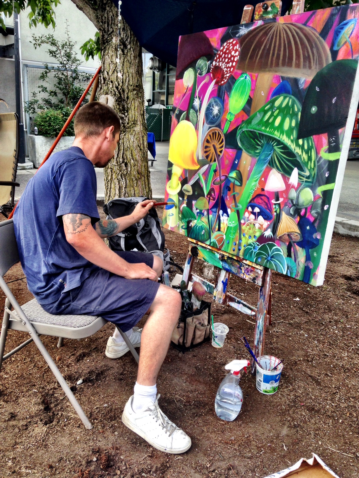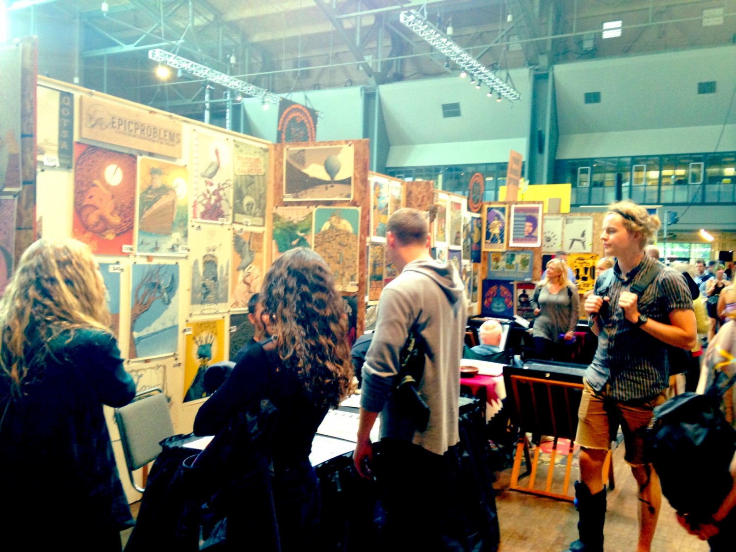 Wandering around Bumbershoot we were so impressed that the crowd is so well disbursed around the Seattle Center. Saw amazing art exhibits, full of fresh printing and press as well as vintage art. It’s so refreshing to see such a local focus. And our favorite part? A baby wearing blue over-ear headphones. lots of little kids w protective head gear- go Bumbershoot!