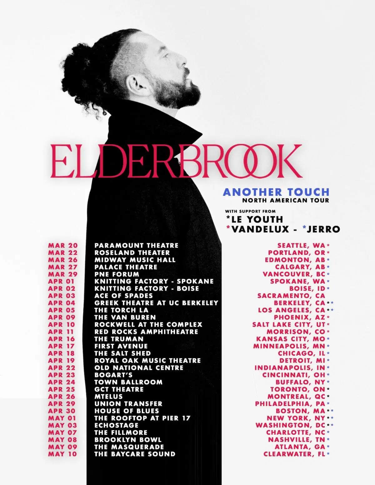 Tickets for all four of Elderbrook’s Another Touch PNW tour stops are still available. The tour, in addition to Seattle, will be stopping in Portland’s Roseland Theater (3/22/25), Vancouver’s PNE Forum (3/29/25), and Spokane’s Knitting Factory (4/1/25).
