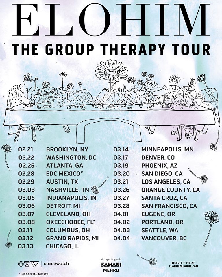 For her first headlining tour, Elohim secured 25 shows for Group Therapy, both as independent shows and as support in huge festivals. It looks like both EDC Mexico and Okeechobee music festivals can look forward to her signature mysterious performance style; Bahari and Mehro are slated to support.