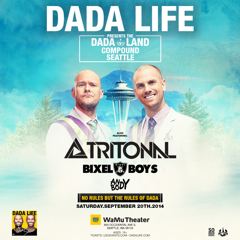 Citizens of Dada Land! The anticipation has been killing us as much as it’s been killing you, but we are proud to announce that the Seattle Dada Land Compound lineup is finally here! Dual citizens of Tritonia and Dada Land will be doubly pleased, as we are spoiled enough to be able to say Tritonal will be coming to the PNW twice within 6 months. Also joining will be Bixel Boys and Andybody, two artists we can’t wait to get to know better. We have all the details regarding the Dada Land lineup and look forward to being your source for all things Dada as September 20th gets closer.