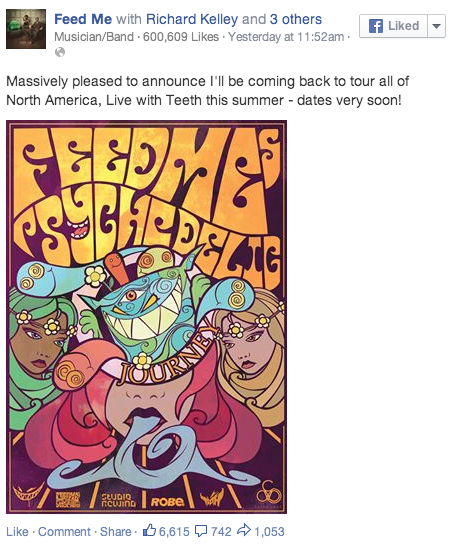 Feed Me surprised fans when he revealed the other day that he would be touring North America this summer following a lengthy break he took to focus on producing. Speculation is that it will be a late summer tour as he already has several gigs booked elsewhere. Jon Gooch has gained an enormous following with his eclectic music and grandiose productions featuring the mischievous character, Feed Me.