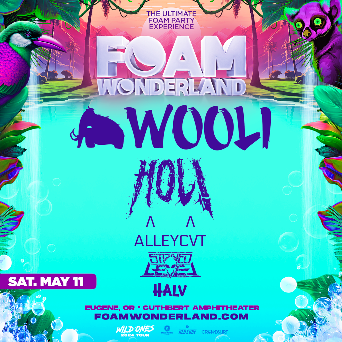 Join us for an incredible day and night of EDM this May for Foam Wonderland at the Cuthbert Amphitheatre and the official after-party at the McDonald Theatre in Eugene, Oregon. For more information about venues, tickets, accessibility, and more click here.