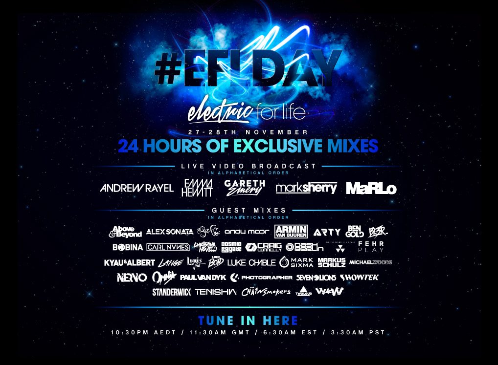 The online event will boast live video performances from Stereosonic Festival in Sydney, Australia. Video performances will include Andrew Rayel, Emma Hewitt, Gareth Emery, Mark Sherry, and MaRLo. Throughout the 24 hours you’ll be able to enjoy guest mixes from Above & Beyond, Aly & Fila, Armin Van Buuren, Arty, BL3R, Dash Berlin, Markus Schulz, Michael Woods, Seven Lions, Paul Van Dyk & so much more. The broadcast starts at 3:30 am PST so if you’re really committed, you’d better be ready to start your day extra early!