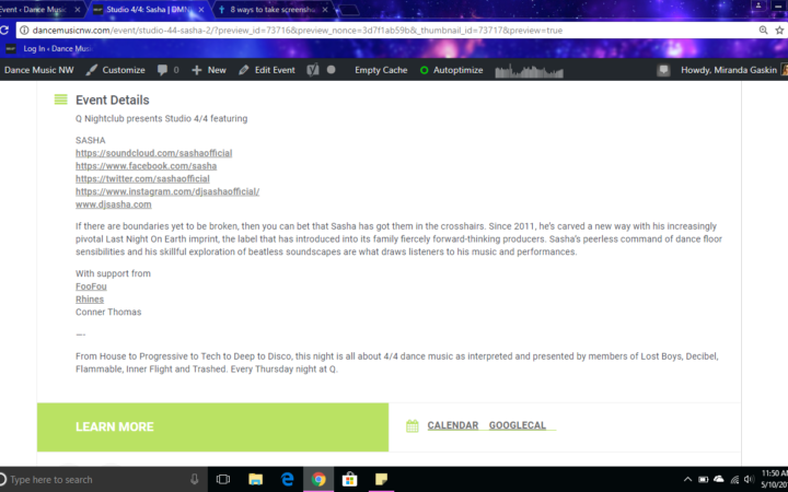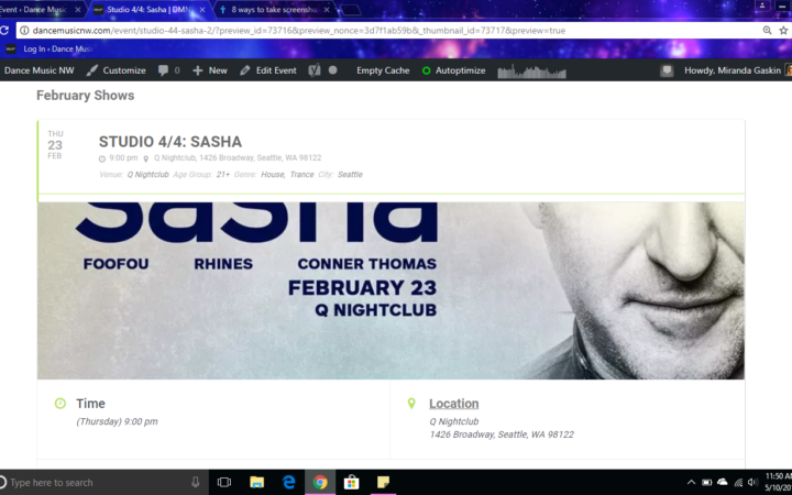 Below is a listing in our working event calendar: STUDIO 4/4: SASHA at Q Nightclub on February 23, 2017.