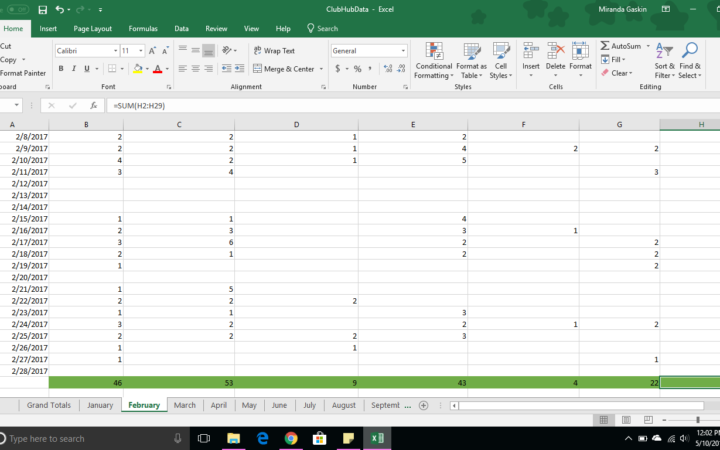 Here is an example of what a completed month of data looks like, in this case February 2017.