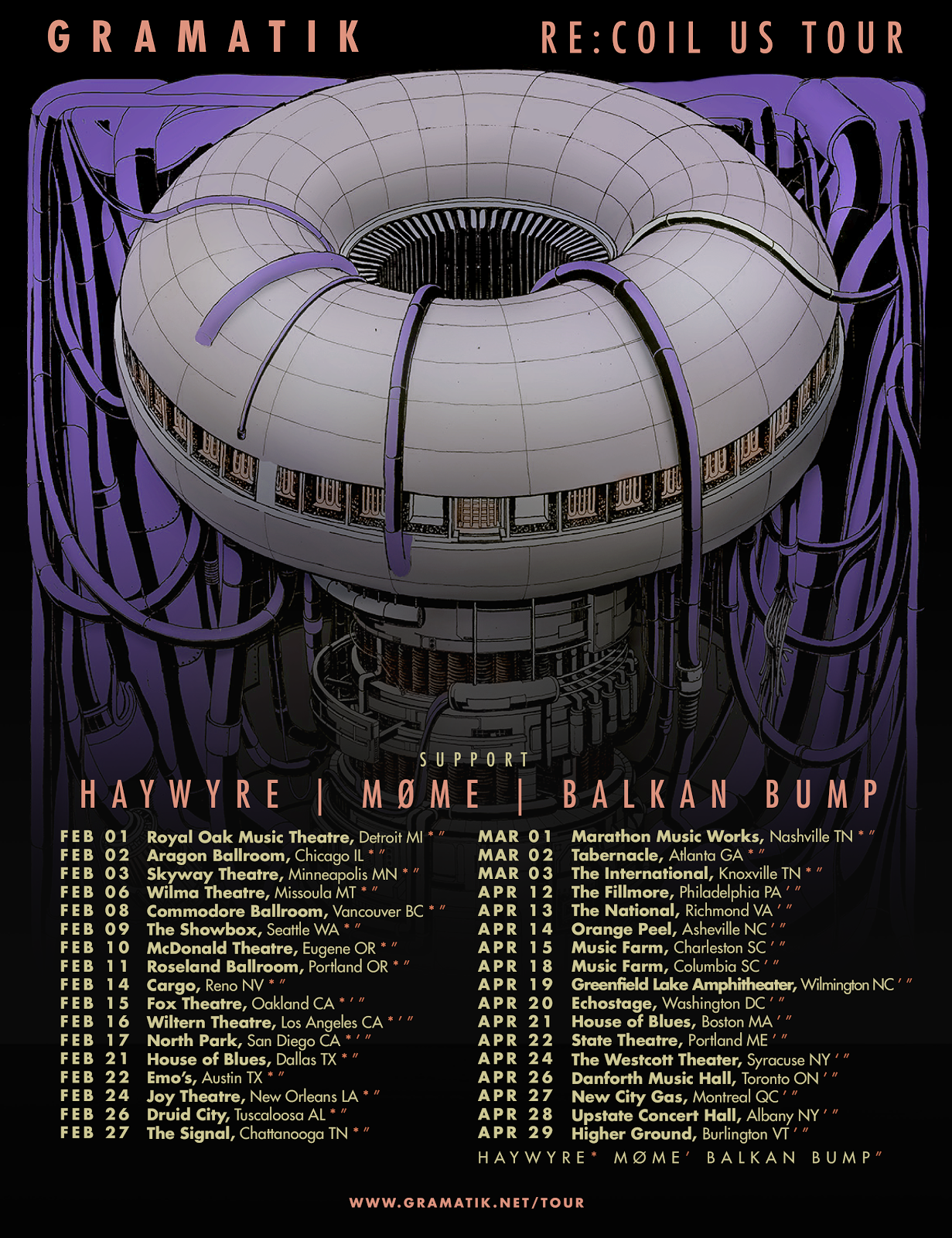 Gramatik’s 2018 is beginning with a bang—a North American tour with Haywyre, Møme, and Balkan Bump. The Re:Coil Tour kicks off in the Pacific Northwest on February 8th at Vancouver’s famed Commodore Ballroom and heads to The Showbox in Seattle the following evening. Then, concludes in Oregon with two back-to-back stops, Eugene on the 10th and Portland on the 11th. Support for all shows in the region will be from Haywyre and Balkan Bump.