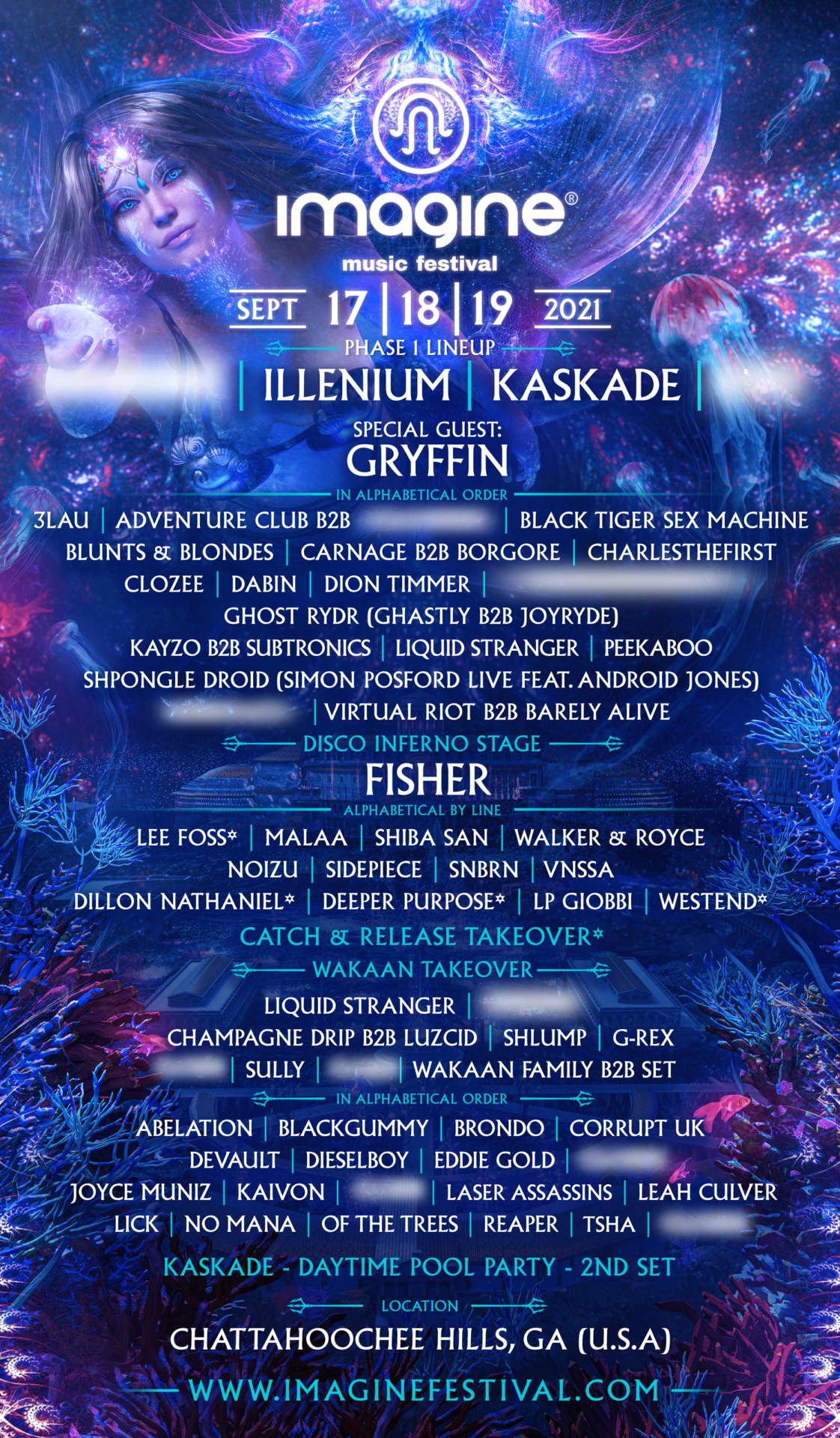 Now, to the good stuff. Phase 1 lineup is packed with heavy hitters like Illenium, Kaskade, BTSM, Gryffin, Kayzo B2B Subtronics, Malaa, Fisher, and more. More artists will be announced in the following month. The phase 1 lineup has already got us hooked! For a full list of the phase 1 artists, see below.