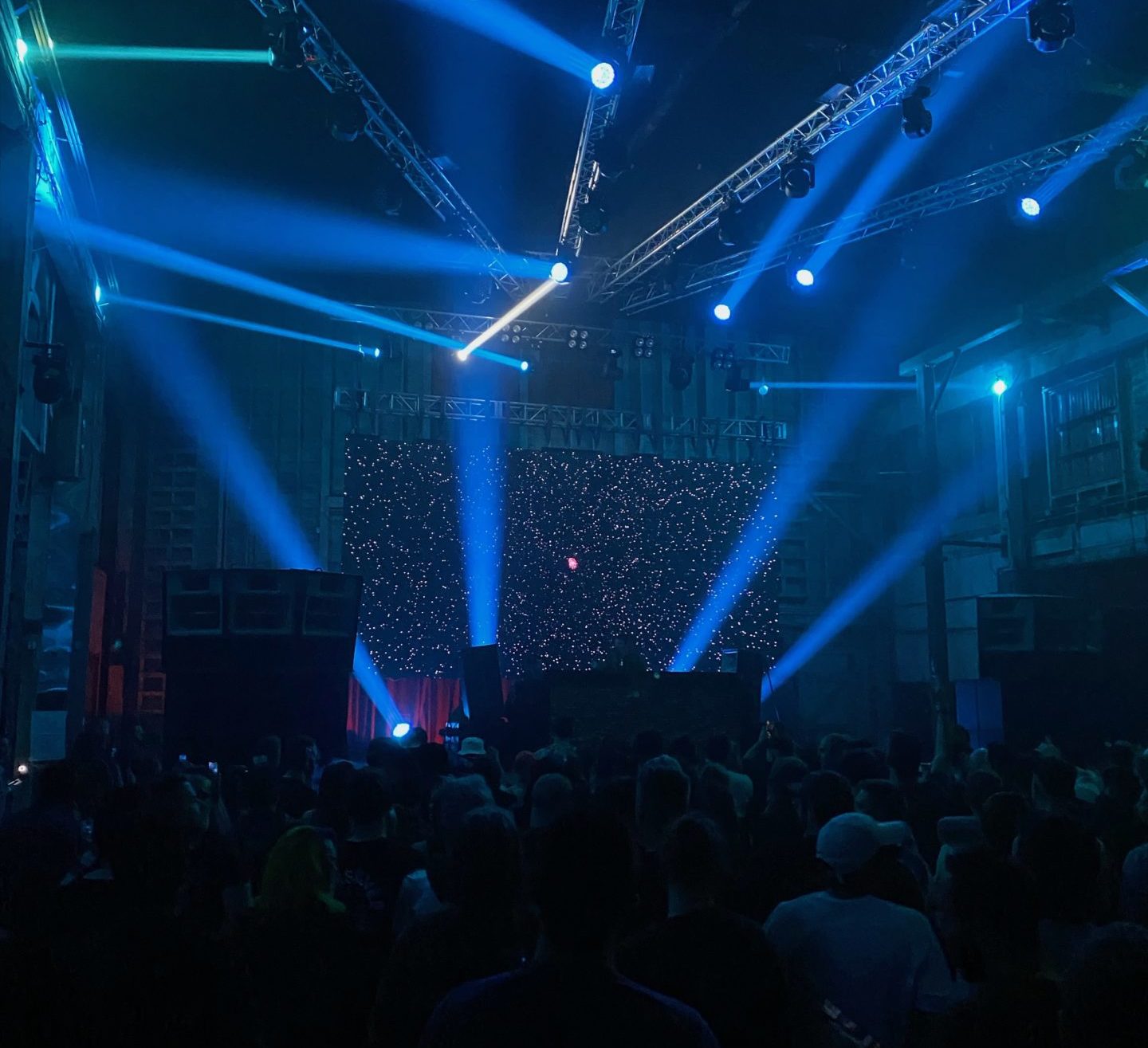 One of the quickest things you can see as soon as you walk into the venue is how big the space is. With a giant LED panel behind the stage, large lights towards the top of the building, and a full Funktion One sound system, it’s set up for killer production and it delivers. When Yotto took the stage and the booming sound had everyone moving, the light panel lit up full of moving stars, before the song dropped and pulsing blue lights took over.