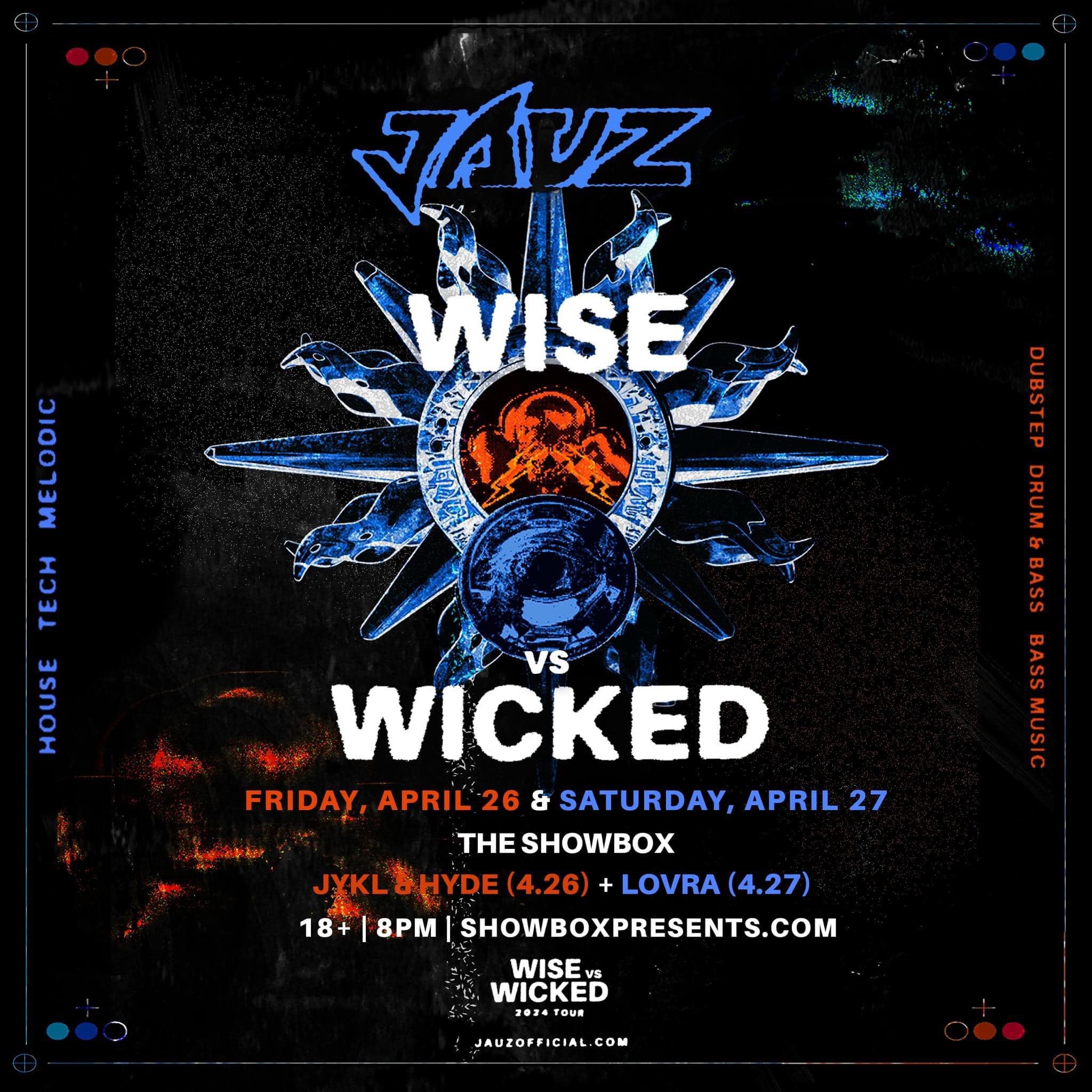 On April 26 and 27, we headed to the Showbox in Seattle for a weekend of electronic music featuring sensational multi-genre artist Jauz. Sam Vogel, also known as Jauz, brought a talented group of artists to Seattle for his Wise vs. Wicked tour over two nights of great music.