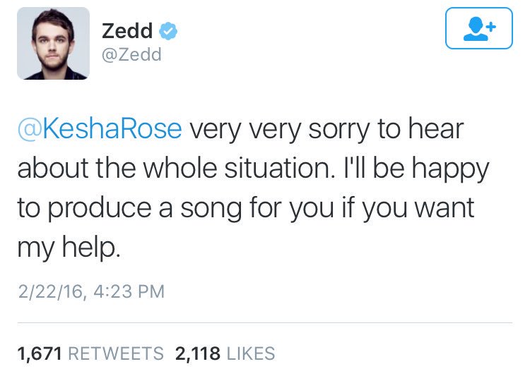 According to Zedd’s Twitter, “Just to clarify: We didn’t use any loop holes. Kemosabe / RCA gave us permission to release this song!” So maybe more singles, and maybe even an album (dare we dream) with a producer other than Dr. Luke could be in Kesha’s near future. As supporters of women and human beings in general, we sure hope so.