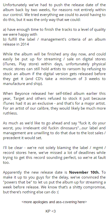 If that was tl;dr, then know this: Knife Party appears to have reached a compromise with their management allowing them to release the album for streaming one week in advance of the official release. This means that we’ll be keeping our ears to the floor waiting for news. We just have to be patient an extra week, when it boils down to it. As soon as we hear the full album, we’ll be sharing it with you!
