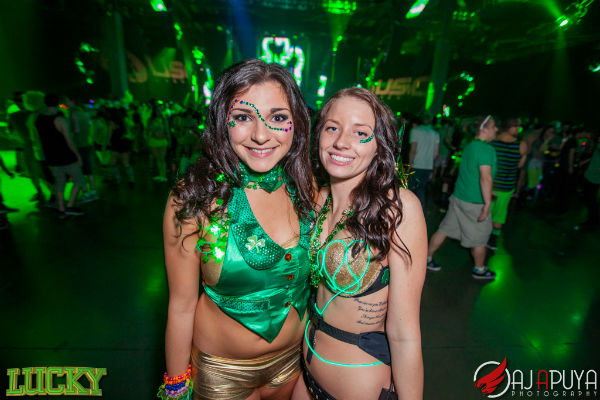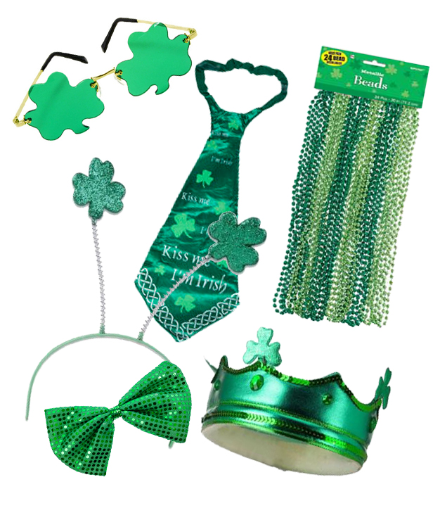 We’re in the land of the Lucky so anything gold, green, or glittery will earn you mucho outfit points! (And may score you a couple of babes on your way to the main stage.) In the past we’ve had good luck with scoping the dollar store for necklaces, glitter, glasses, and anything shamrock shaped. Also, Target has a good dollar section with all sorts of holiday themed merchandise.
