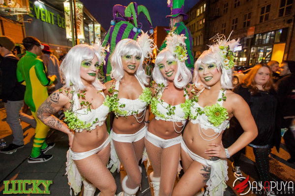 Adorn yourself in green make-up, paint, glitter, and stick-on decals. Nothing is off limits! Make yourself a green goddess or a green goblin; apply eye jewels and stripe your hair with hair chalk to make yourself the Emerald Queen or stripe yourself in green body paint to make yourself a green galactic warrior!
