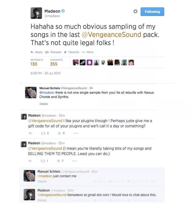 Most of us know being a producers isn’t all rainbows and butterflies. We often hear of situations or arguments about how so and so stole this sound, or that sample. It can get pretty nasty sometimes, trust us. The latest issue that’s come to everyone’s attention via twitter is between Madeon and Vengeance. Madeon, a 20-year-old producer from France, stated that some of Vengeance’s samples sounded remarkably similar to his own original sounds. Vengeance, a long-time d&b DJ/ producer of Brittain, scoffed at Madeon’s accusation and retorted back that all of his samples were made personally in Nexus (a popular production tool).