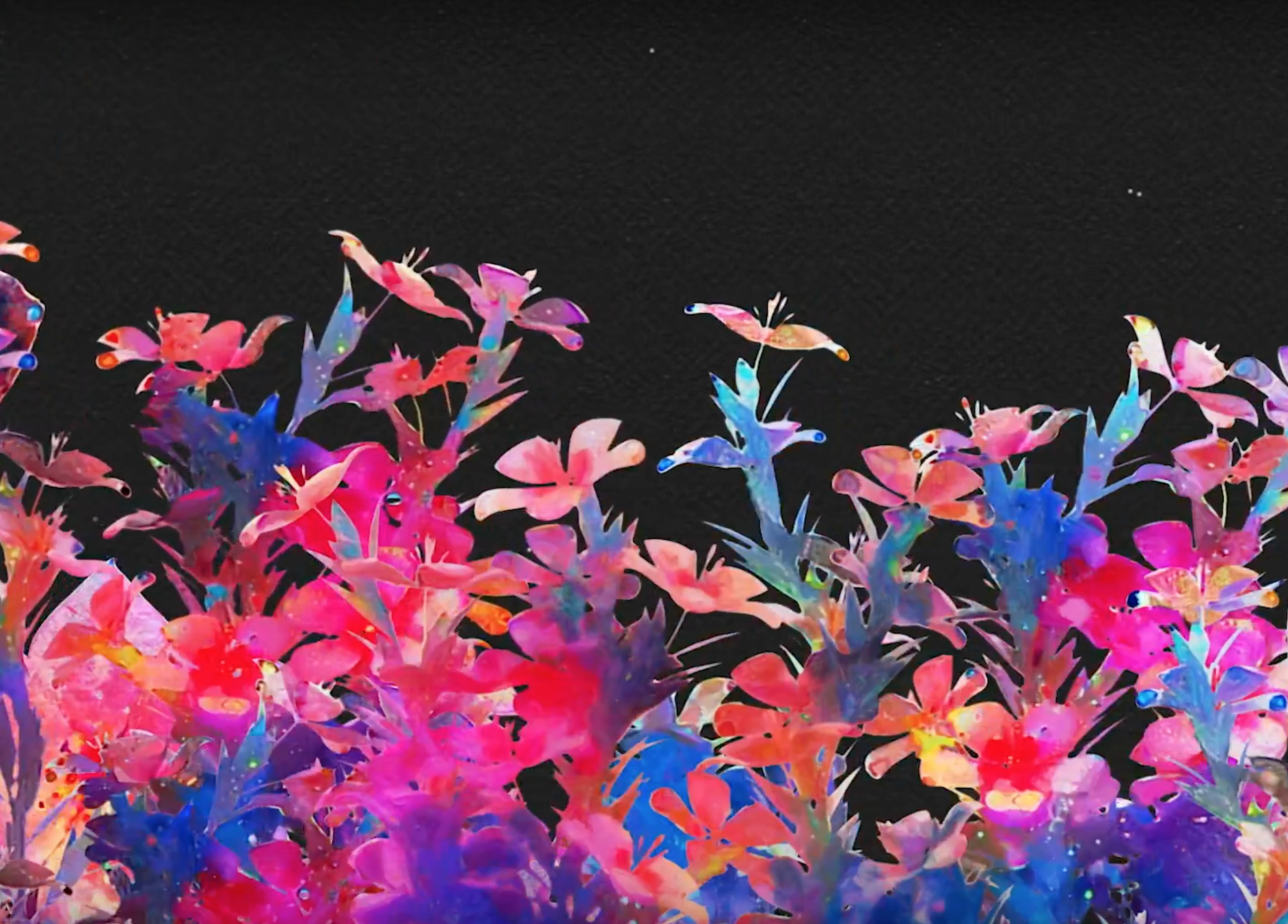 Drops of paint appear to bloom into flowers of all shapes and sizes, while subtle musical riffs are perfectly visualized. Like any great music video, the image deepens our understanding of the song on an emotional as well as musical level.