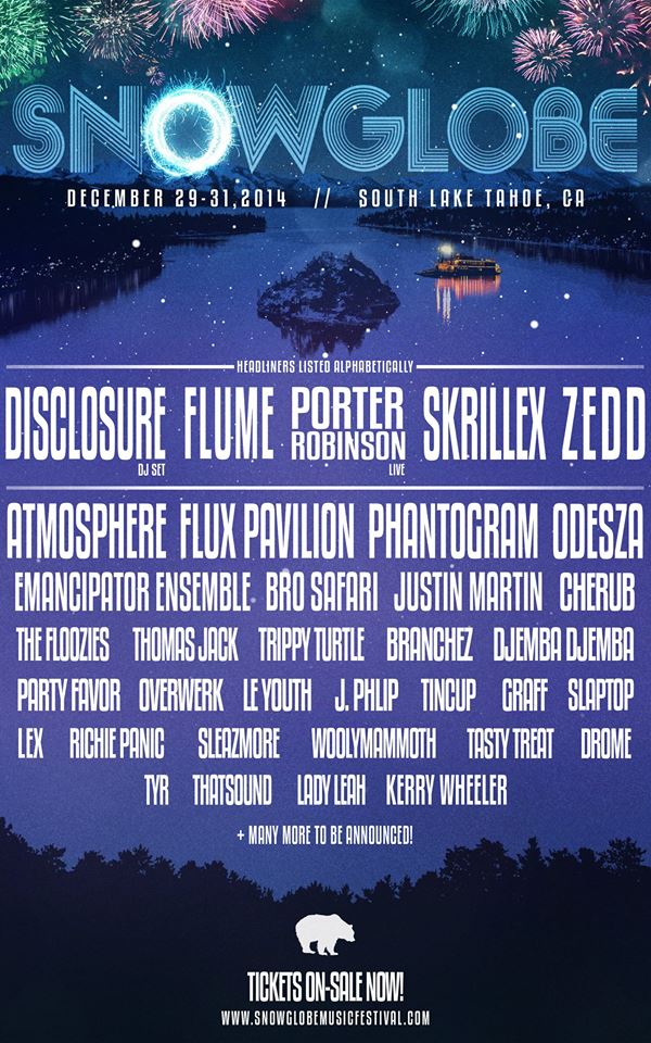 There are VERY few festivals that are held in areas where it regularly snows for New Year’s Eve. However, for Snowglobe Music Festival, held annually in Lake Tahoe, it’s not uncommon for it to snow for at least a portion of the three day event. This year the lineup includes headliners Skrillex, Flume, Zedd, Disclosure (DJ Set), and Porter Robinson (Live). Some of the supporting acts include Flux Pavilion, Odesza, Bro Safari, The Floozies, Thomas Jack and many more. There are three upcoming DJ’s that will have the honor of opening up the main stage during one of the days of the festival.