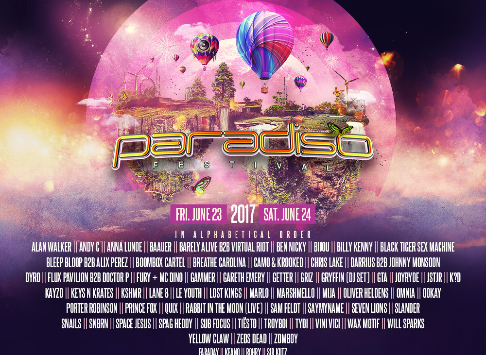 [accordion-group title=”Full Paradiso 2017 Lineup (Text)”]Alan Walker, Andy C, Anna Lunoe, Baauer, Barely Alive B2B Virtual Riot, Ben Nicky, Bijou, Billy Kenny, Black Tiger Sex Machine, Bleep Bloop B2B Alix Perez, Boombox Cartel, Breathe Carolina, Camo & Krooked, Chris Lake, Darrius B2B Johnny Monsoon, Dyro, Flux Pavilion B2B Doctor P, Fury + MC Dino, Gammer, Gareth Emery, Getter, GRiZ, Gryffin (DJ SET), GTA, Joyryde, JSTJR, K?D, Kayzo, Keys N Krates, KSHMR, Lane 8, Le Youth, Lost Kings, Marlo, Marshmello, Mija, Oliver Heldens, Omnia, Ookay, Porter Robinson, Prince Fox, Quix, Rabbit In The Moon (Live), Sam Feldt, SAYMYNAME, Seven Lions, Slander, Snails, SNBRN, Space Jesus, Spag Heddy, Sub Focus, Tiësto, Troyboi, Tydi, Vini Vici, Wax Motif, Will Sparks, Yellow Claw, Zeds Dead, Zomboy