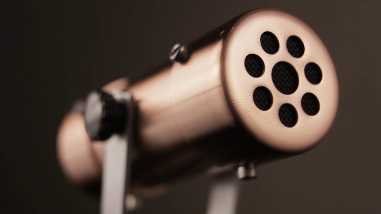 Placid Audio is renowned for their particular-looking microphones. These steampunk-stylized instruments sound just as good as they look, with tons of visceral analog mojo. Thanks to the design of their Copperphonea limited frequency spectrum is captured (200-3k Hz), resulting in a fantastic lo-fi sound without the use of processing. It sounds great on pretty much everything, which is why many major recording artists swear by having one readily at their disposal.