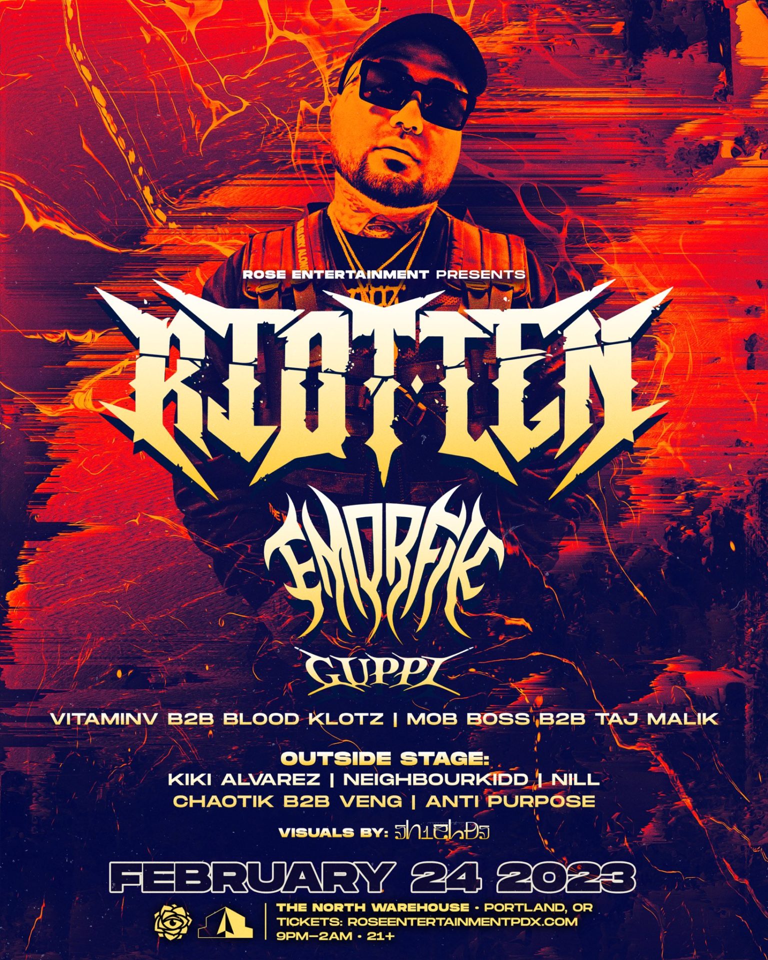 We had such a great time at Riot Ten and are happy that he and his crew, and incredible support made a stop in Portland! Big thanks to the North Warehouse and Rose Entertainment for putting on this fun event. Be sure to check out these remarkable artists: Taj Malik, VitaminV, Bloodklotz, Guppi, Emorfik, and Riot Ten, as well as those who were playing outside!